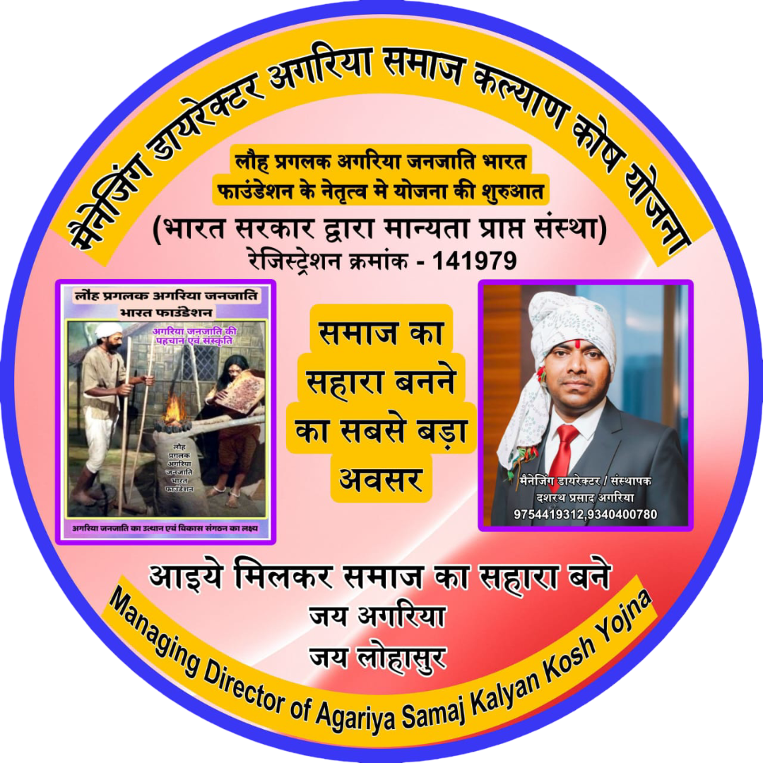 लौह प्रगलक अगरिया जनजाति भारत फाउंडेशन के तत्वावधान मे , मैनेजिंग डायरेक्टर अगरिया समाज कल्याण कोष योजना